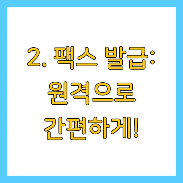 팩스가 설치된 곳이라면 어디든, 인터넷 발급과 동일한 절차로 팩스 전송 옵션을 선택하여 자격득실확인서를 원격으로 제출할 수 있습니다. 수신 팩스 번호 입력 시 오류가 없도록 정확하게 입력하는 것이 중요합니다! 팩스 발급 역시 발급 수수료는 무료입니다.