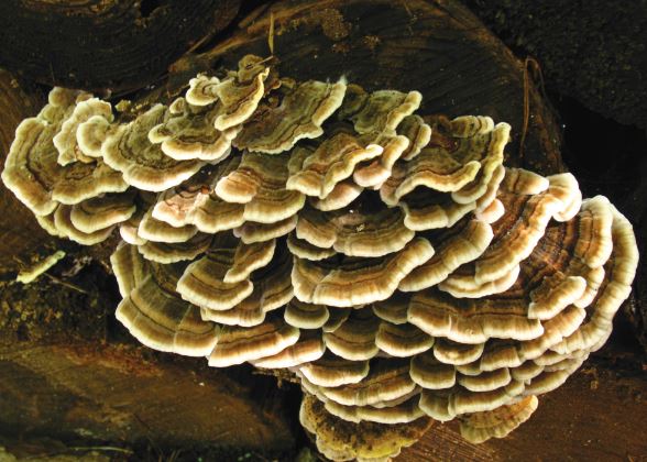 구름송편버섯은 목재 부후균으로서, 나무를 분해하는 역할을 합니다.
