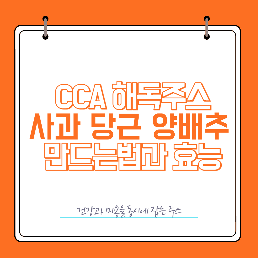 CCA주는 carrot 당근 cabbage 양배추 apple 사과의 앞글자 만을 따서 만들어진 이름으로 최근 건강과 아름다움을 동시에 관리하고 싶은 분들에게 인기있는 해독 주스예요