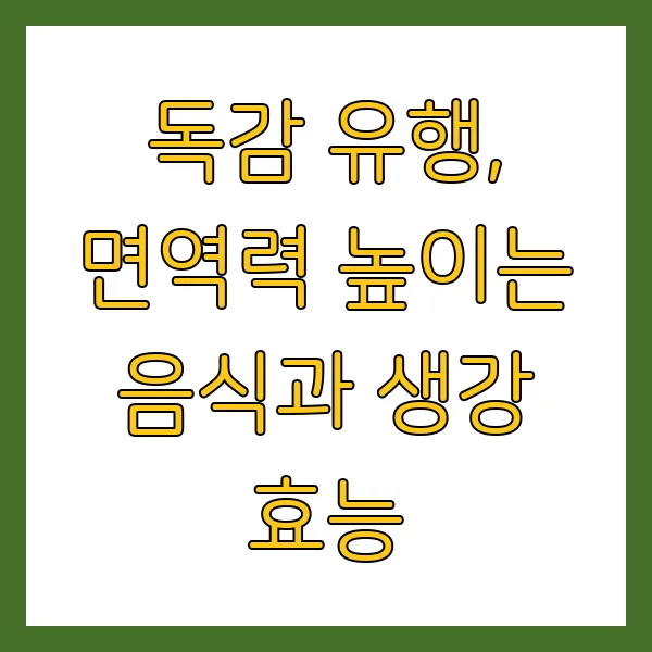 독감 유행 시기에는 면역력 강화를 위해 생강, 마늘, 비타민 C, 비타민 D, 아연, 프로바이오틱스, 단백질 등 다양한 영양소가 풍부한 식품을 균형 있게 섭취하고 건강한 생활 습관을 유지하는 것이 중요합니다! 면역력 증진을 위한 꾸준한 노력과 함께 건강하고 행복한 겨울을 보내시길 바랍니다! 😊