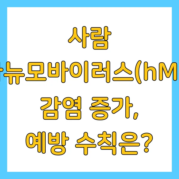 특히, 영유아와 노년층은 hMPV 감염 시 중증으로 진행될 가능성이 높으므로 예방에 더욱 신경 써야 합니다 .
