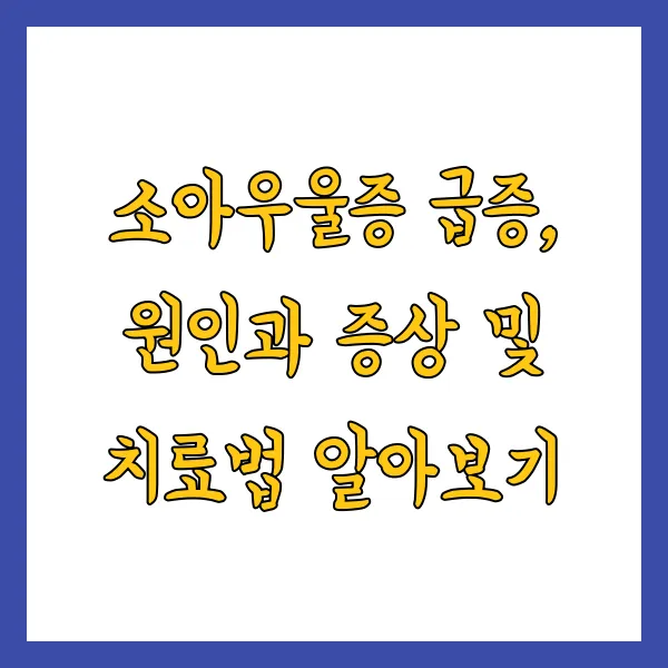 - 소아 특유의 증상 : 소아 우울증만의 독특한 증상도 있습니다. 예를 들어, 짜증이나 예민함이 심해지거나, 반대로 과잉행동을 보이는 경우도 있습니다. 또한, 원인을 알 수 없는 두통, 복통, 소화불량 등의 신체적 증상을 호소하기도 합니다. 심한 경우 죽음이나 자살에 대한 생각을 표현하기도 하므로, 아이의 말과 행동 변화에 세심한 관심을 기울여야 합니다.