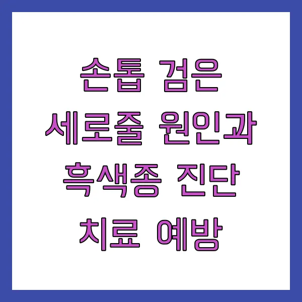 손톱에 생긴 검은 세로줄, 그냥 넘겨도 될까요? 아니면 심각한 질병의 신호일까요? 혹시 흑색종은 아닐까 걱정되시나요? 이 글에서는 손톱 검은 세로줄의 다양한 원인과 흑색종 진단법, 치료법, 그리고 예방법까지 꼼꼼하게 알려드립니다.