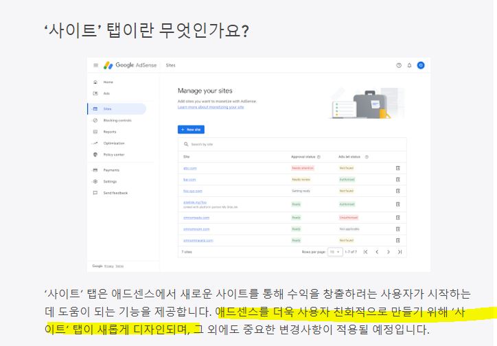 아주 편해졌죠? 물론 초기에 시행하는 계획으로 사이트 검토시간이 소요될 수 있지만 구글에서는 성능과 사용성을 개선하여 애드센스 이용자들에게 더 좋은 혜택을 주기 위해 노력하고 있다고합니다.