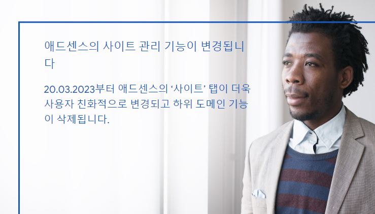 올해 3월 20일부터 애드센스 사이트 탭이 사용자 친화적으로 변경되고 하위 도메인 기능이 삭제된다는 메일은 늦은 밤 당황스럽기 짝이없습니다. 몇몇 분들은 벌써 하위블로그 추가 하는 탭이 안보인다는 이야기도 하셨는데요.