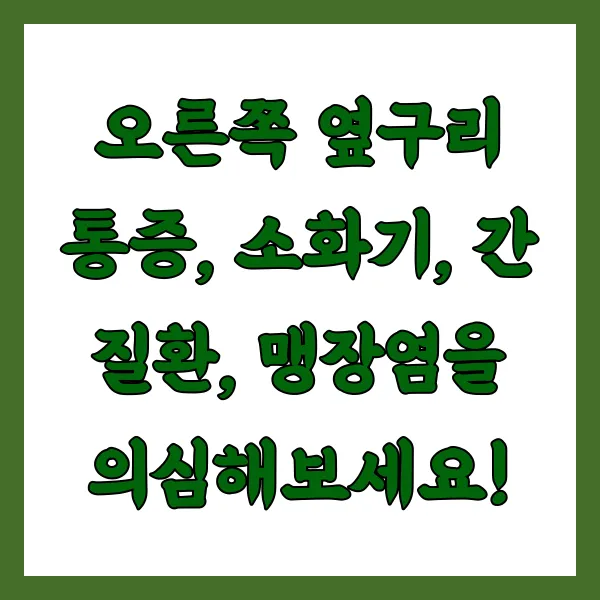 오른쪽 옆구리가 아프다면? 소화기 질환, 간 질환, 맹장염 등 다양한 원인을 생각해 볼 수 있습니다. 어떤 질환들이 있는지 자세히 알아볼까요?
