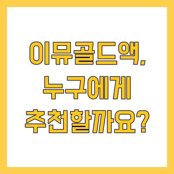 - 환절기 건강 관리가 필요한 분: 면역력이 약해지기 쉬운 환절기에 이뮤골드액으로 건강을 지키세요!