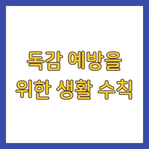 - 손 위생 철저히 하기 : 비누와 물로 20초 이상 꼼꼼하게 손을 씻는 것은 독감 예방의 기본입니다! 외출 후, 식사 전, 화장실 사용 후에는 반드시 손을 씻으세요. 손 소독제를 사용하는 것도 좋은 방법입니다.