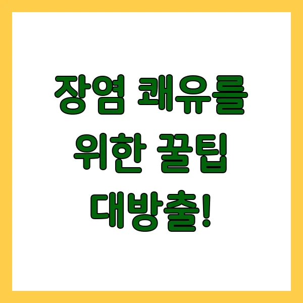 이 가이드라인을 잘 따라서 장염을 빨리 극복하고 건강한 일상으로 돌아가세요! 균형 잡힌 식단과 충분한 수분 섭취, 그리고 전문가의 도움으로 건강한 장을 지키세요!