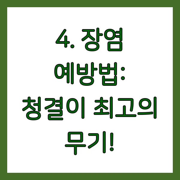 장염은 개인 위생 관리만 철저히 해도 예방할 수 있습니다. 손 씻기는 기본 중의 기본! 비누를 사용해서 흐르는 물에 30초 이상 꼼꼼하게 씻어야 합니다. 특히 화장실 사용 후, 음식 조리 전후, 외출 후에는 반드시 손을 씻는 습관을 들여야 합니다. 음식도 조심해야죠! 충분히 익혀 먹고, 날것과 익힌 음식은 따로 보관해야 합니다. 냉장 보관이 필요한 음식은 적절한 온도에서 보관하고, 유통기한이 지난 음식은 절대 먹지 않도록 주의해야 합니다. 물도 끓여 마시는 것이 안전합니다. 수건, 칫솔, 식기 등 개인 위생 용품은 다른 사람과 공유하지 않도록 주의해야 하고요. 로타바이러스 장염은 예방 접종으로 예방할 수 있으니, 접종 시기를 놓치지 마세요!