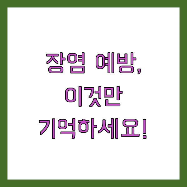 장염은 불편하고 힘든 질환이지만, 예방 수칙을 잘 지키고 적절한 치료와 관리를 받으면 충분히 이겨낼 수 있습니다. 건강한 장을 위해, 오늘부터 생활 습관을 개선해 보는 것은 어떨까요? 😉