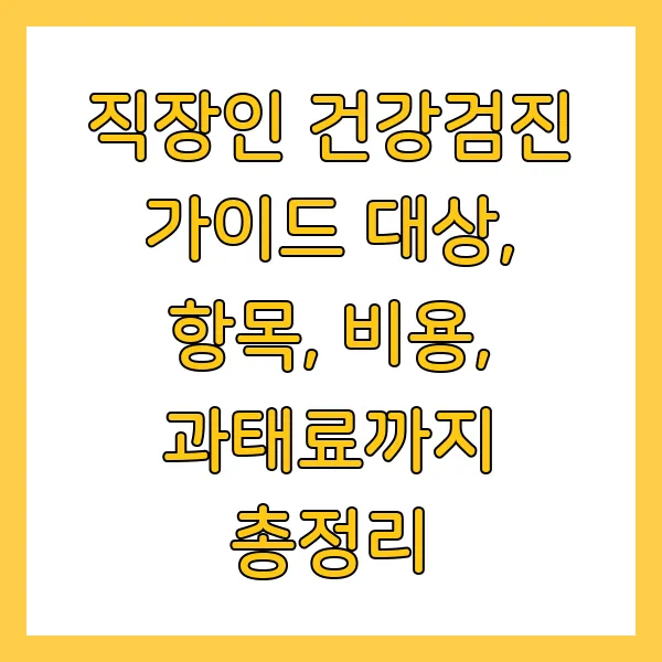 직장인 건강검진, 낯설지만 중요한 그것! 건강검진 대상, 항목, 비용, 과태료까지 핵심 정보만 쏙쏙! 알려드립니다. 혹시 나도 건강검진 대상일까? 암검진, 일반검진 항목은 뭐가 있을까? 비용은? 과태료는?! 이 모든 궁금증, 지금 바로 해결하세요!