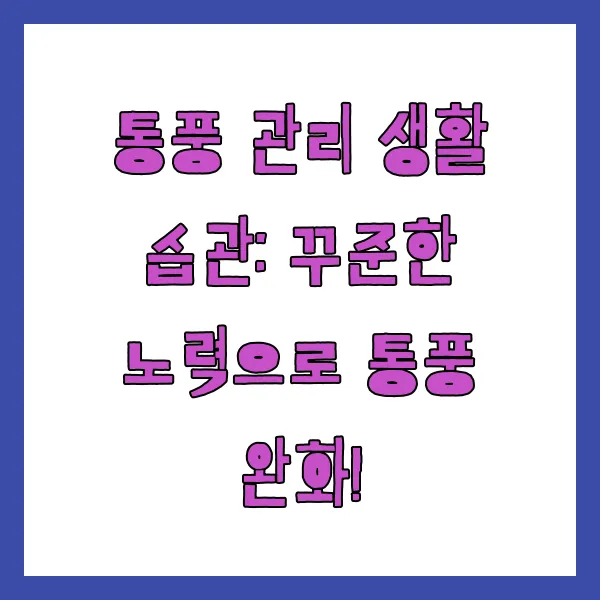 - 규칙적인 운동 : 꾸준한 운동은 체중 관리에 도움이 될 뿐만 아니라, 혈액 순환을 개선하고 통풍 증상 완화에도 효과적입니다.
