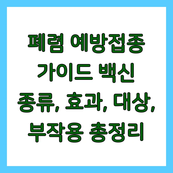 폐렴은 누구에게나 찾아올 수 있는 질병이지만, 특히 노약자나 만성 질환자 에게는 치명적 일 수 있습니다. 폐렴구균 백신 접종은 폐렴 예방의 가장 효과적인 방법 입니다. 이 글에서는 폐렴 백신의 종류, 효과, 접종 대상, 부작용 등 꼭 알아야 할 필수 정보를 제공합니다. 자신에게 맞는 백신을 선택하고 건강을 지키세요! 폐렴, 폐렴구균, 예방접종, 백신, PCV13, PCV15, PPSV23, 부작용, 접종 대상, 예방 효과 등의 키워드를 중심으로 폐렴 예방에 필요한 모든 것을 담았습니다.