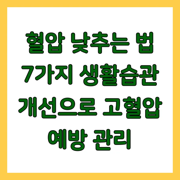 고혈압은 '침묵의 살인자'라고 불릴 만큼 위험한 질환이지만, 생활습관 개선을 통해 충분히 예방하고 관리할 수 있습니다. 위에서 제시된 7가지 방법을 꾸준히 실천하여 건강하고 활기찬 삶을 누리시길 바랍니다! 자신의 혈압 수치를 정확히 파악하고, 필요한 경우 전문가의 도움을 받는 것을 잊지 마세요! 당신의 건강, 소중하게 지켜나가세요!