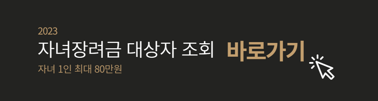 22년에는 1인 최대 70만원의 자녀장려금을 지급하였으나 올해 23년에는 10만원 증액하여 최대 80만원이 지급됩니다. 위 링크를 클릭하여 기간에 맞춰 정기분 신청을 하시길 바랍니다.