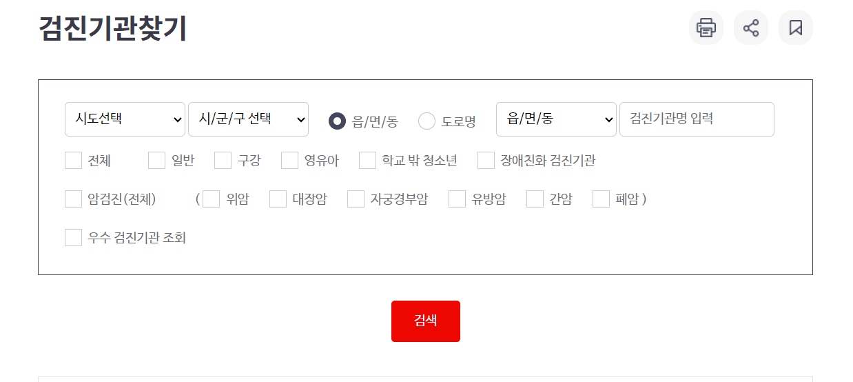 검진기관 찾기에 접속하시면 해당 목록에서 시/군/구를 선택하고 검진 받으셔야하는 항목을 체크하면 우리동네 근방에 검진기관이 나오는데 전부다 검사를 해주는지 확인 후에 병원에 전화해서 검진 예약을 하면 조금 더 편하게 검진 진료를 받아 보실 수 있을 것입니다