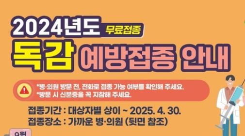 2024-2025 독감 무료접종이 곧 시작돼요! 🦠💉
