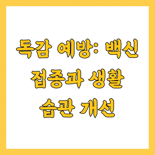 규칙적인 운동, 균형 잡힌 식사, 충분한 수면 등 건강한 생활 습관을 유지하면 면역력을 강화하고 독감 예방에 도움이 됩니다. 또한, 독감 유행 시기에는 사람이 많은 곳을 피하고 마스크를 착용하는 등 개인위생 관리를 철저히 해야 합니다. 손을 자주 씻는 것도 중요한 예방법 중 하나입니다. 비누를 사용하여 30초 이상 꼼꼼하게 손을 씻으면 독감 바이러스를 포함한 다양한 감염병 예방에 효과적입니다.