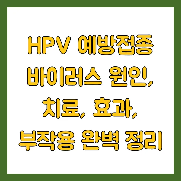 HPV(인유두종 바이러스) 예방접종은 자궁경부암을 비롯한 다양한 암과 생식기 사마귀를 예방하는 가장 효과적인 방법입니다. 이 글에서는 HPV의 원인, 증상, 치료법, 예방접종의 효과와 부작용, 나아가 안전한 성생활 수칙까지 HPV에 관한 모든 것을 완벽하게 정리했습니다. 예방접종을 고려하고 있다면, 꼭 읽어보세요! 키워드: HPV 예방접종, HPV 백신, 자궁경부암 예방, 곤지름, 인유두종 바이러스